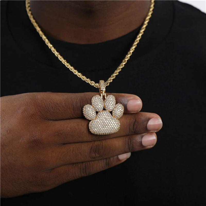 Gold Dog Paw Pendant Necklace For Men Jewelry Accessories Iced Out Animal Paw Pet Choker Necklace Hiphop 2022 Necklace Aliexpress